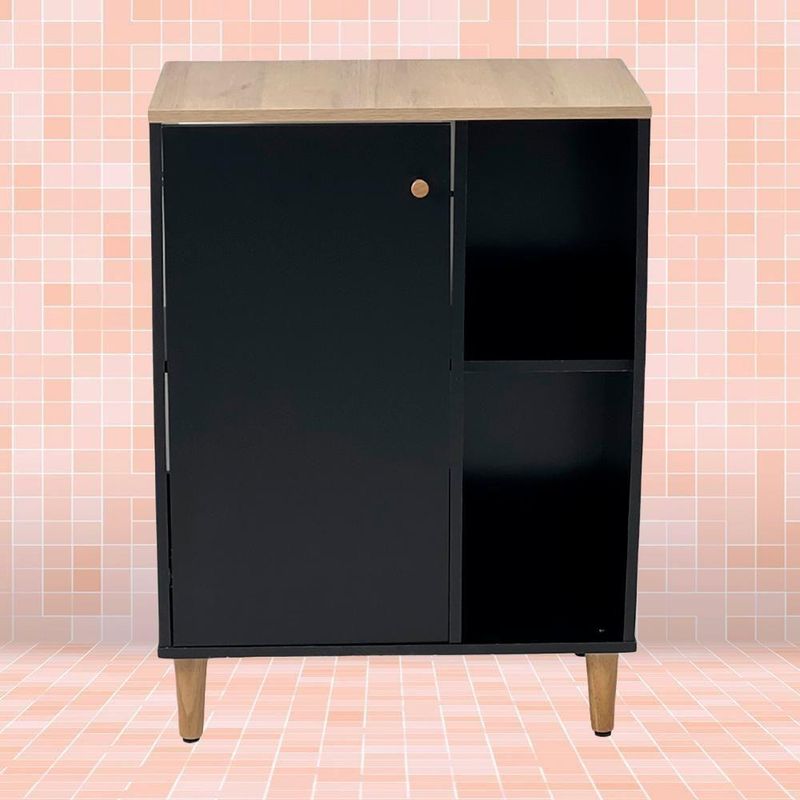Gabinete Banheiro 1 Porta 2 Prateleiras 60 Cm Bn06 Preto Dtall Preto