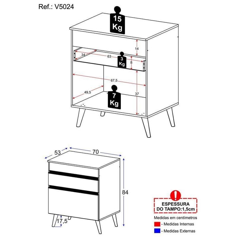 Altura: 84cm | Largura: 70cm | Profundidade: 53cm (balcão com tampo)