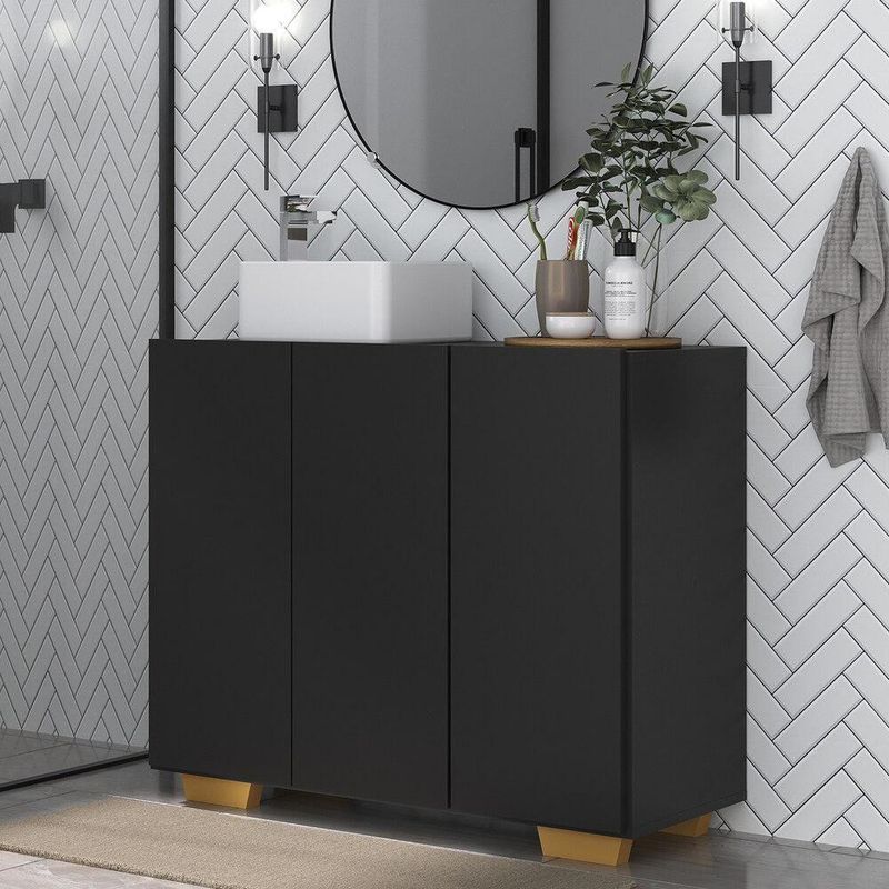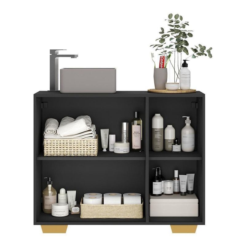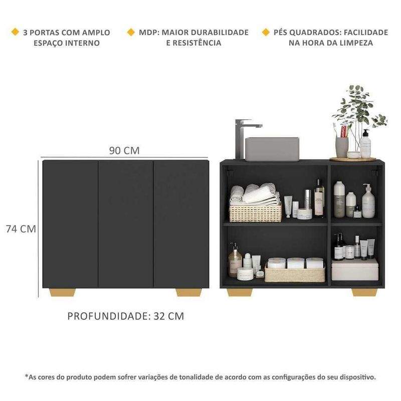 O Gabinete Banheiro 3 Portas 90cm Multimóveis é produzido em MDP com acabamento acetinado (cerca de 20% de brilho), que garante maior durabilidade, facilidade na limpeza, além de um acabamento superior. Com 3 portas, possui um excelente espaço interno para organizar itens de higiene, toalhas e demais objetos (as prateleiras internas suportam 2 e 5 Kg e o tampo 7 Kg). Os pés quadrados, em polipropileno, facilitam na hora da limpeza. Uma ótima opção para deixar seu banheiro bonito, prático e organizado. Não acompanha torneira e cuba.