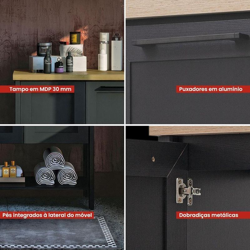 Gabinete Banheiro Com Tampo 2 Portas 79 Cm Bn02 Preto Dtall Preto