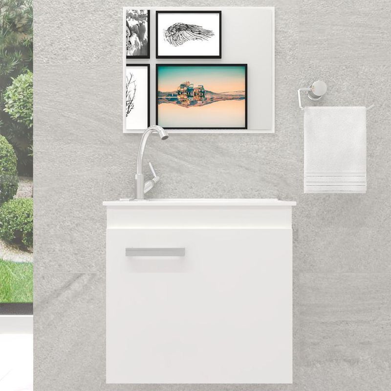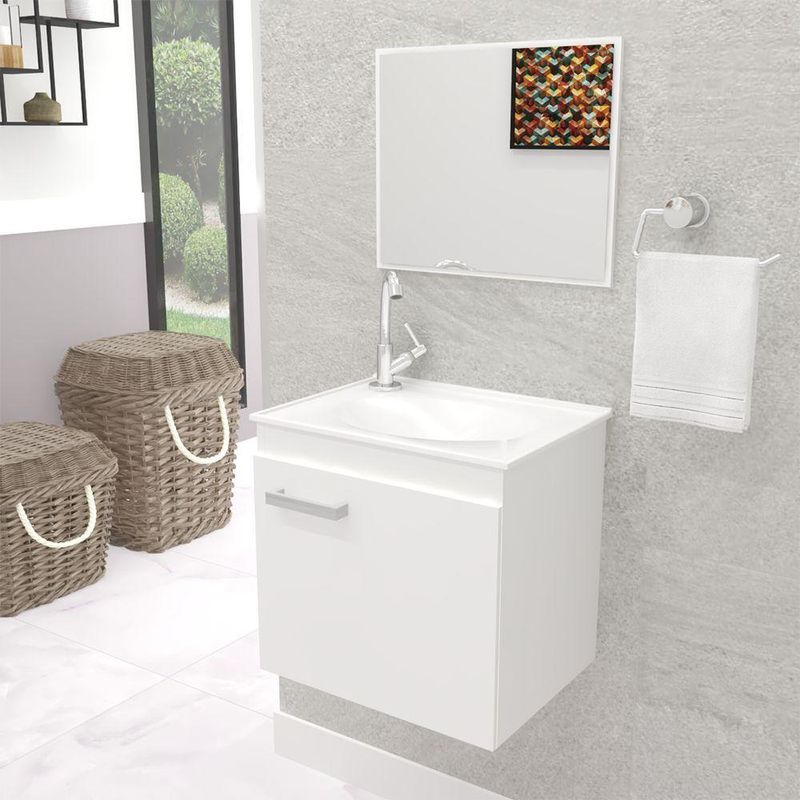 Gabinete Banheiro Em Mdf C/ Espelho E Cuba Siena Branco