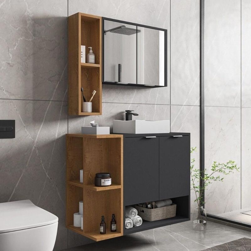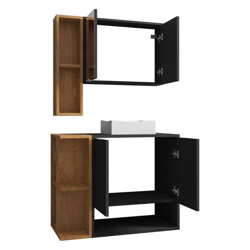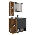 Gabinete De Banheiro Suspenso Com Cuba E Espelheira 70cm Multimóveis Cr10125 Preto Fosco/naturalle Preto Fosco/naturalle