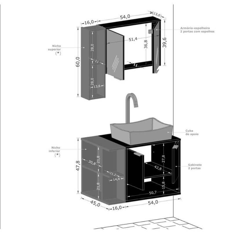 Espelheira - Altura: 60cm (Nicho) - 39,6cm (Armário)