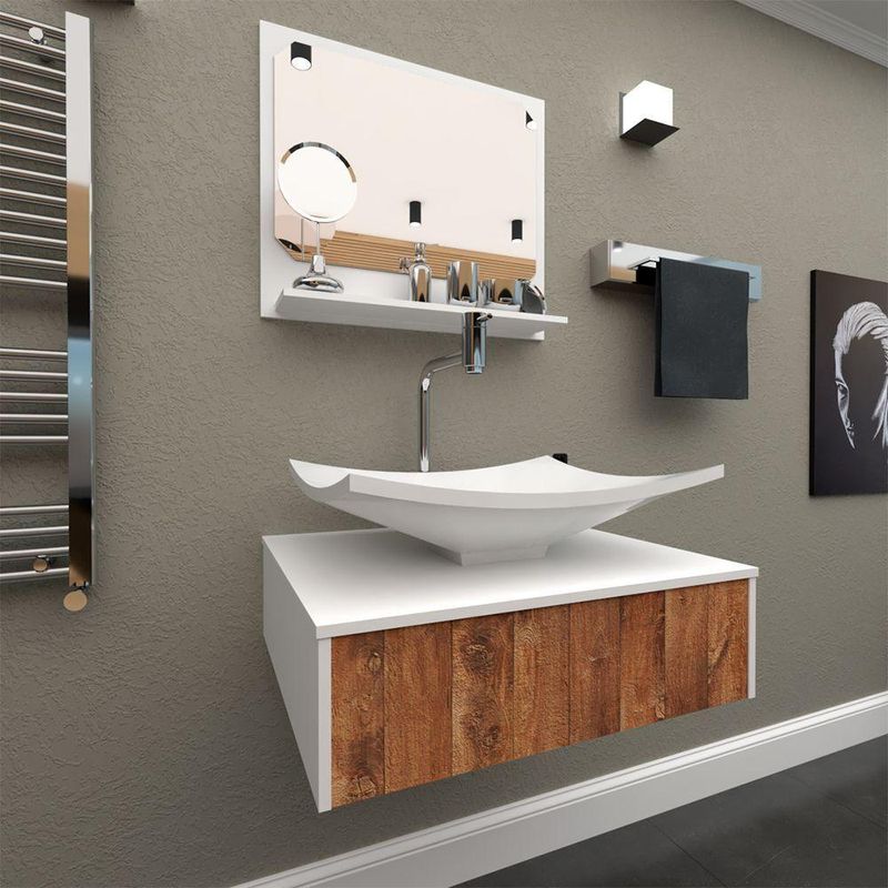 Gabinete Para Banheiro Com Cuba + Espelheira Madri 50 Cm Western