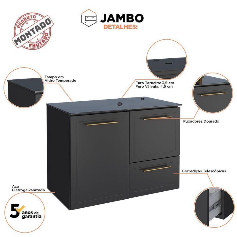Gabinete Para Banheiro em Aço Jambo Cozimax Preto - 80 -