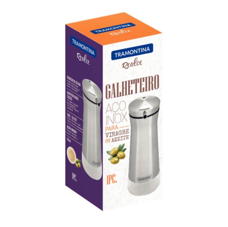 Para temperar aquela salada especial e deixá-la com muito mais sabor, o galheteiro Tramontina Realce 0,25 litros é a escolha ideal. Ele tem sua produção em vidro e revestimento em aço inox com sistema corta-gotas que controla o fluxo do azeite ou vinagre. Ele possui um design moderno e é de alta durabilidade, características que fazem dele um item perfeito para fazer parte da sua mesa!