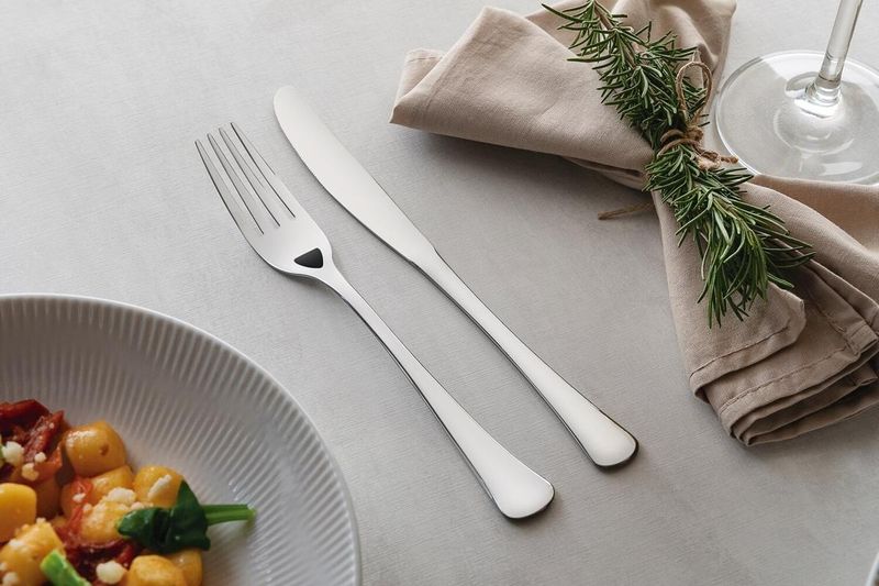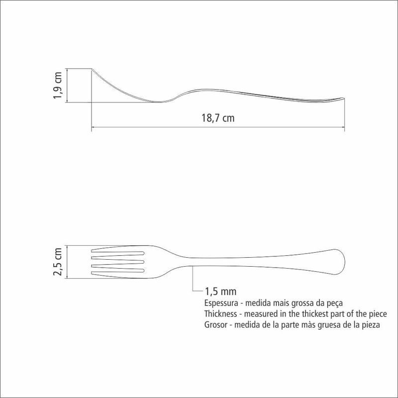 - Garfo com dentes polidos na parte interna, para proporcionar maior conforto no uso, com formato apropriado para a boca e bordas arredondadas.