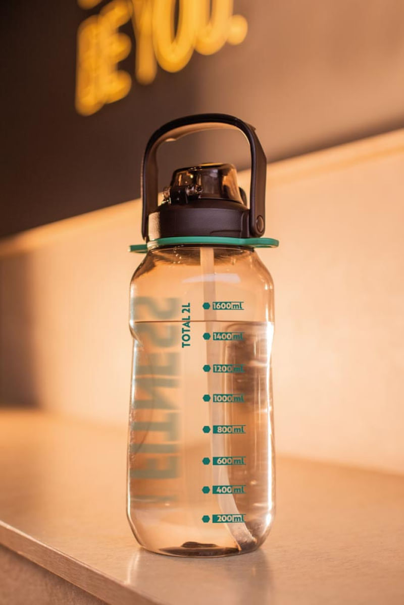 A Garrafa Fitness 2 L é a parceria certa em qualquer atividade física, seja na academia ou nos exercícios ao ar livre. Possui design funcional e recursos inteligentes que a tornam um item de grande praticidade e utilidade.O tirante ajustável e removível facilita o transporte, enquanto o suporte para celular integrado à alça da tampa permite manter o dispositivo sempre ao alcance, além de servir como apoio para gravações.Além disso, possui canudo removível, botão para abertura do bocal e trava de segurança que evita vazamentos e garante um transporte mais seguro, mesmo em movimento. É a companhia certa para os momentos de força e foco.Obs: lavar o produto de 1 a 2 vezes, com água ou detergente neutro na primeira utilização. Importante limpá-lo e armazená-lo seco para não acumular bactérias.