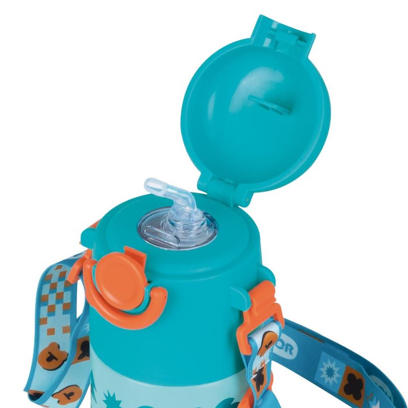 A Garrafa Térmica Kids Alça Azul 500 ml mantém a bebida da garotada na temperatura ideal. Na escola, em casa, em passeios e viagens, é uma companheira de grande utilidade, já que combina praticidade e eficiência.Possui tirante, ajustável, que facilita o transporte para a molecada. Além disso, possui tampa com trava de segurança e botão de abertura, que garante mais proteção contra vazamentos acidentais durante o transporte, como em mochilas e sacolas.Também conta com canudo em silicone e base emborrachada antiderrapante, que proporciona mais firmeza ao apoiá-la em superfícies.