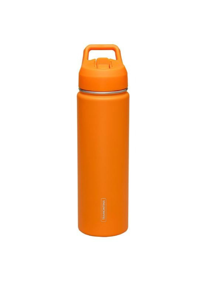 Com design vibrante e formato que acompanha sua rotina, a Garrafa Térmica Tramontina 650 ml em aço revestido laranja com canudo é ideal para quem gosta de se manter hidratado em qualquer lugar. Graças à parede dupla com isolamento a vácuo, ela conserva cubos de gelo por até 16 horas e mantém bebidas geladas por até 7. A tampa com bico rígido, canudo flexível e alça integrada facilita o uso no dia a dia, seja na escola, na academia ou durante atividades ao ar livre. O bico é desmontável, o que garante uma limpeza mais simples e eficiente. Fácil de transportar em mochilas ou bolsas, é uma ótima aliada para quem busca praticidade sem abrir mão de um visual moderno e funcional. Um presente útil e inteligente para todas as idades.