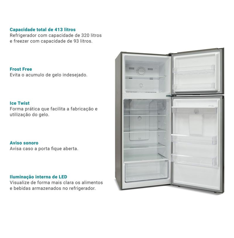 • Capacidade de 413L (320L no refrigerador e 93L no freezer)
