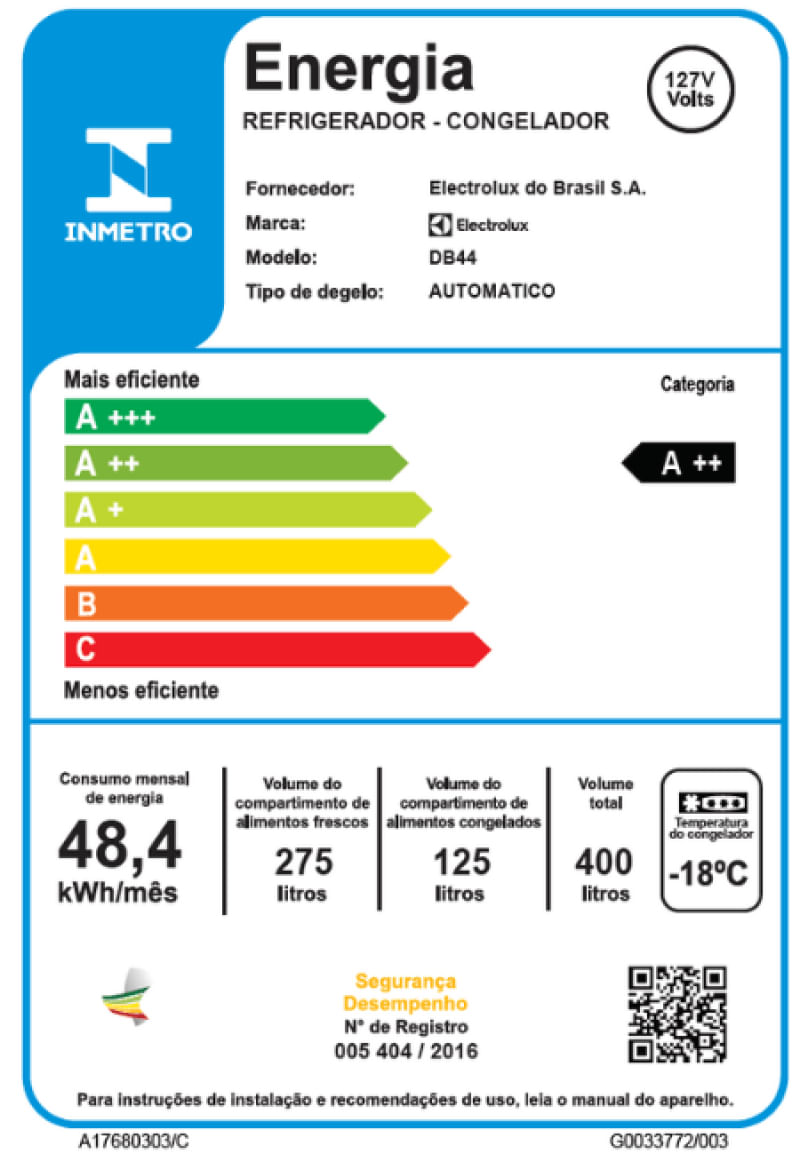 A Geladeira Electrolux Inverse Efficient 400 L Branca (DB44) possui tecnologia AutoSense, que utiliza Inteligência Artificial para controlar a temperatura automaticamente, prolongando a vida dos alimentos por até 30%¹ mais tempo.