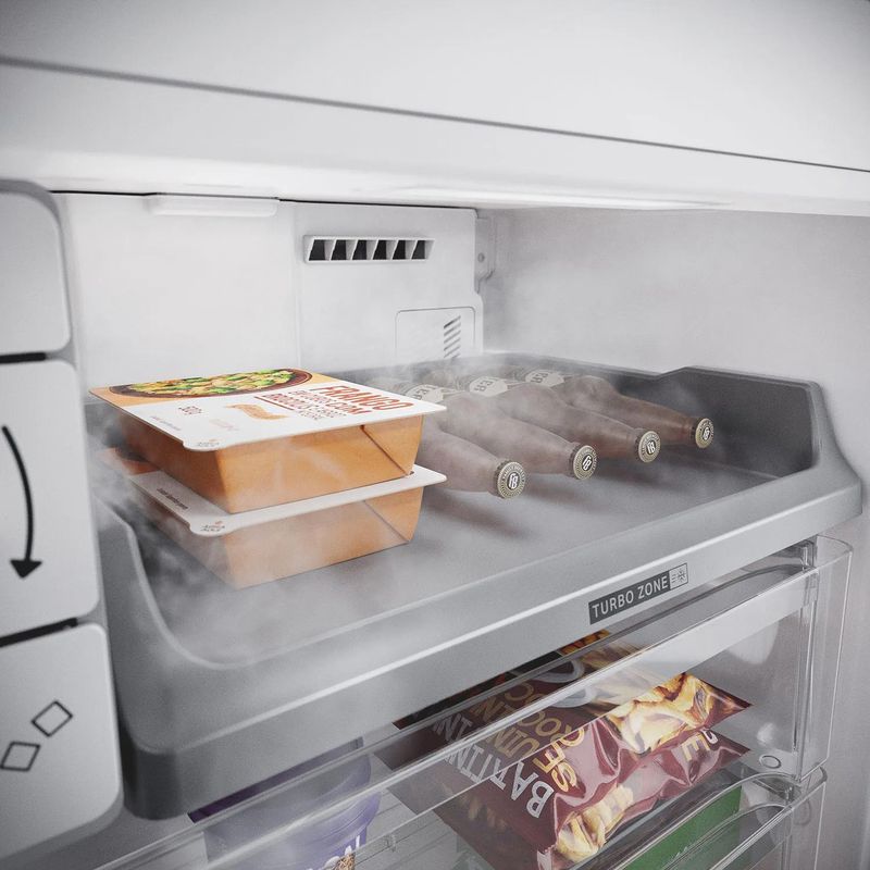 Lugar de alimento é na prateleira que você quiser! Tecnologia que distribui o ar frio igualmente na geladeira, deixando todos os compartimentos com a mesma temperatura, para você organizar tudo do seu próprio jeito.