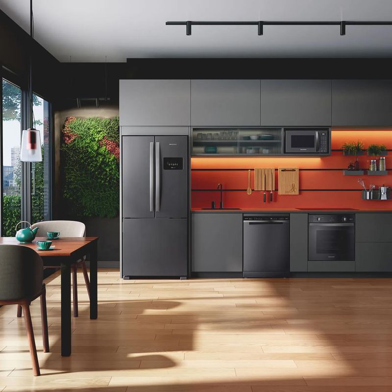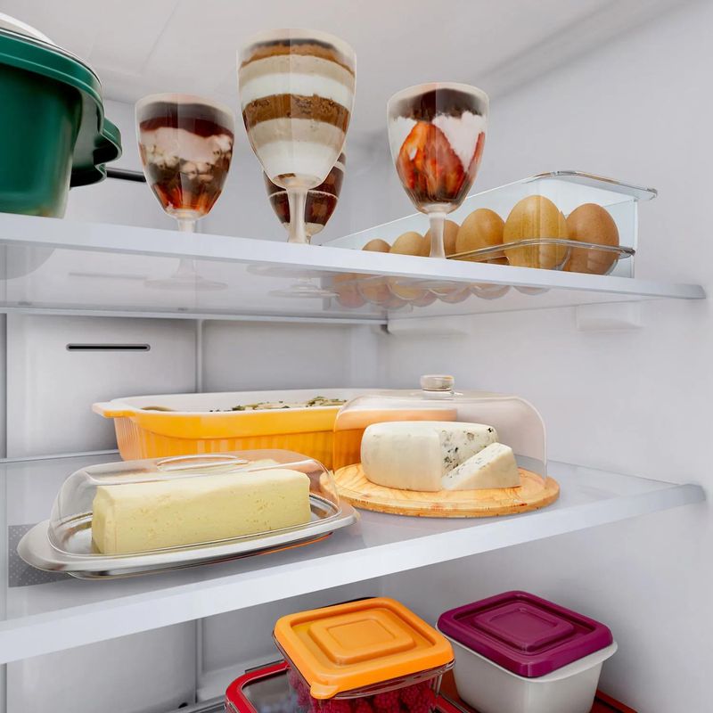 Mais liberdade e visibilidade para organizar tudo do seu jeito. As prateleiras de vidro temperado e borda infinita combinadas à iluminação em LED oferecem uma visão panorâmica e clara no interior da geladeira. Design feito para você ter tudo ao alcance dos seus olhos.