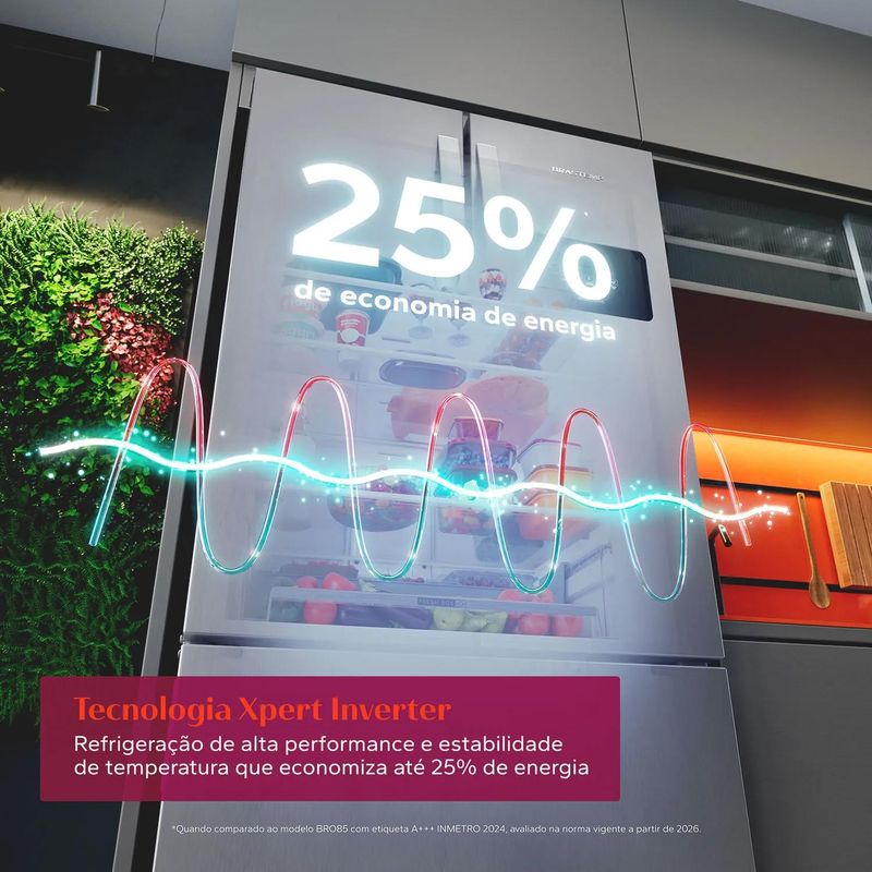 Refrigeração de alta performance e estabilidade de temperatura que economiza até 25% de energia. A Tecnologia Xpert Inverter entrega eficiência energética e melhor desempenho na preservação de alimentos.