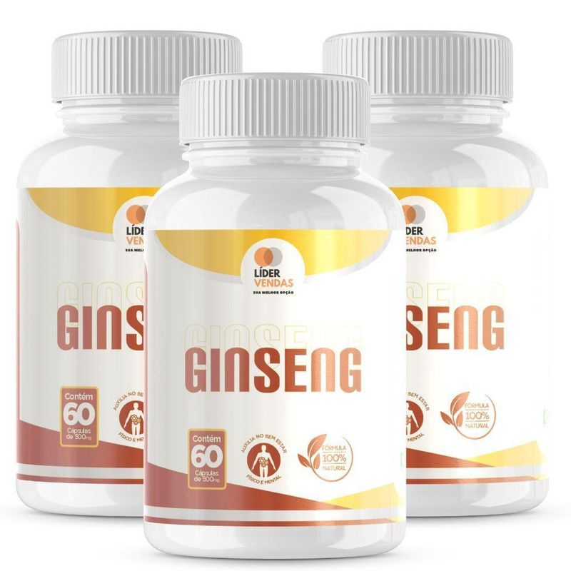 Ginseng 500mg 60 Cap - 3 Potes Energia, Foco E Resistência Natural!