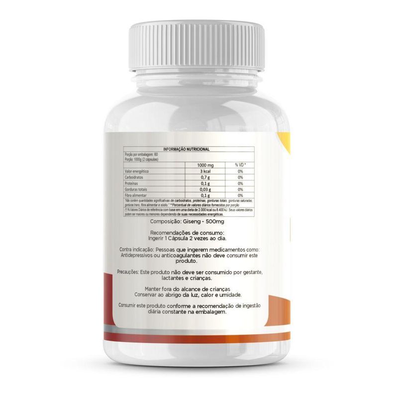 Sinta o poder do Ginseng! Esse super suplemento natural é ideal para quem busca mais energia, resistência física e mental, além de reforçar a imunidade. O Ginseng é conhecido há séculos como um revitalizante natural, ajudando a combater o cansaço, melhorar o desempenho cognitivo e fortalecer o sistema imunológico.Cada cápsula de 500mg contém um extrato puro e concentrado de Ginseng, garantindo mais disposição para o seu dia a dia. Com 60 Cáp. por frasco, você tem um aliado essencial para mais produtividade e bem-estar!100% Natural Mais energia e foco Fortalece a imunidadeGaranta o seu agora e recarregue suas energias naturalmente!