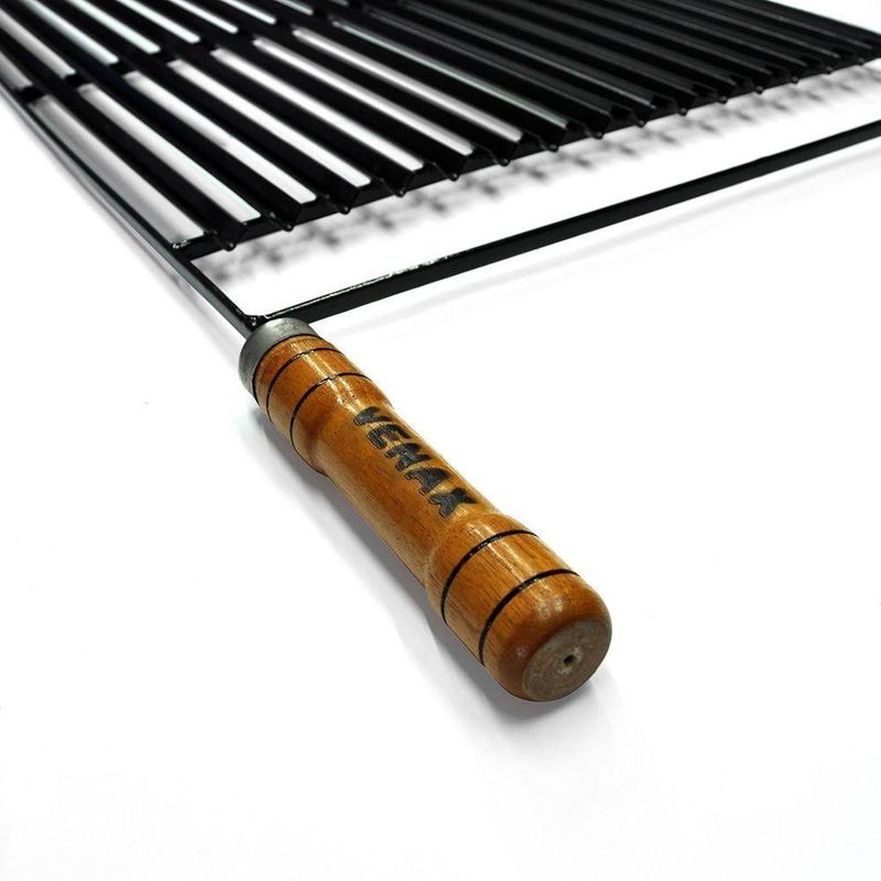 Grelha para Churrasco Esmaltada 93 x 48 Venax - Especificações TécnicasIdeal para grelhar abobrinhas, berinjelas, diversos cortes de carnes, frangos e peixes.Cabos de madeira.