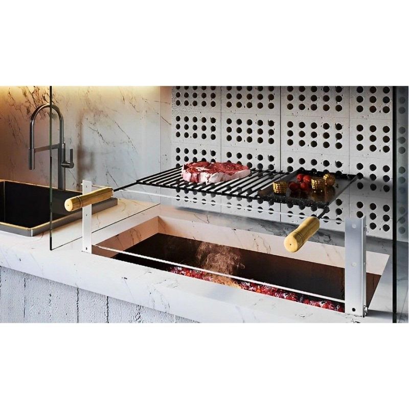 Grelha Para Churrasco Esmaltada Barra Redonda Com Chapa Auxiliar 70x58 Cm