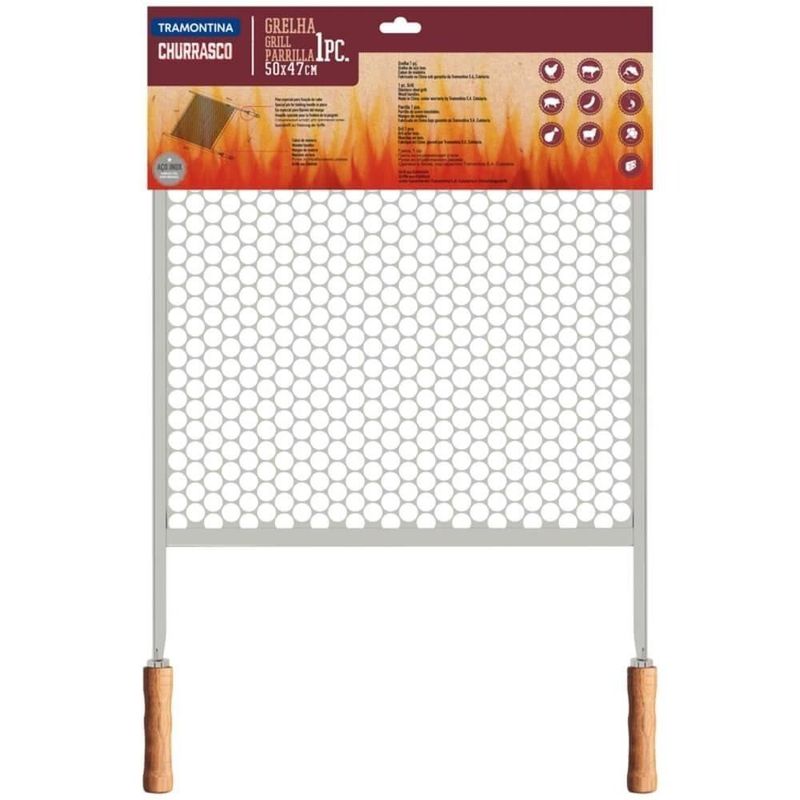 Grelha Tramontina Churrasco 83,5x47,1cm Em Aço Inox E Cabo De Madeira