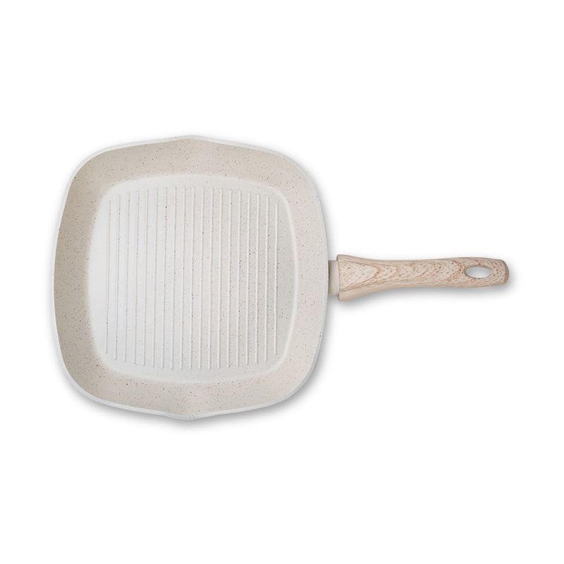 O Grill com Indução 28 cm da Linha Ceramic Life Sirius/Brinox é ideal para preparar proteínas de todos os tipos, em especial as mais delicadas, já que suas elevações não deixam ressecar o alimento.