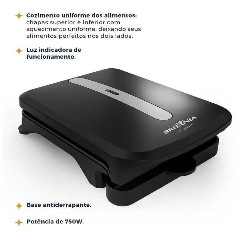 Grill Britânia 750W 2 Sanduiches Chapas Antiaderentes BGR12A 110V