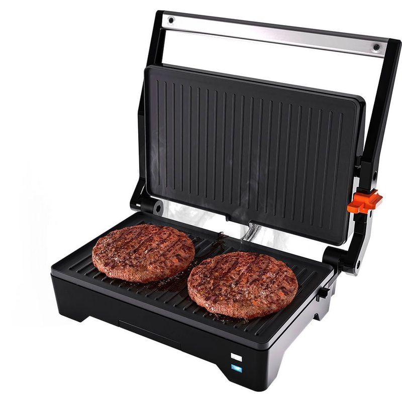 Antes do primeiro uso, unte levemente as chapas com um pouco de óleo, feche o produto, conecte-o na tomada e aguarde até que a chapa esquente (cerca de 10 minutos). Retire o plugue da tomada e limpe o excesso de gordura apenas com papel toalha.Descrição do ProdutoMultifuncional com altura ajustável, chapa dupla aquecida e antiaderente, permitindo preparar diversos tipos de alimentos.
