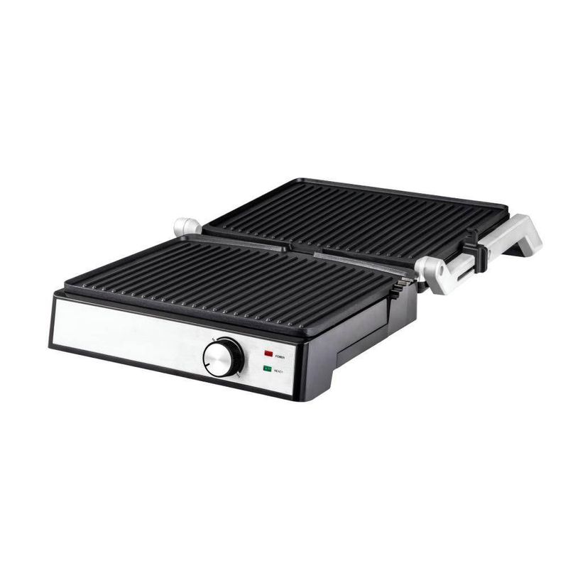 Grill em inox 1400W com chapa dupla de 180° e ajuste de temperatura