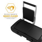 Possui 7 níveis de temperatura, sendo possível ajustar individualmente cada chapa, alcançando até 220°C. Isso possibilita preparar diferentes tipos de alimentos ao mesmo tempo, desde hambúrgueres suculentos até legumes grelhados, com o ponto exato de cozimento desejado.