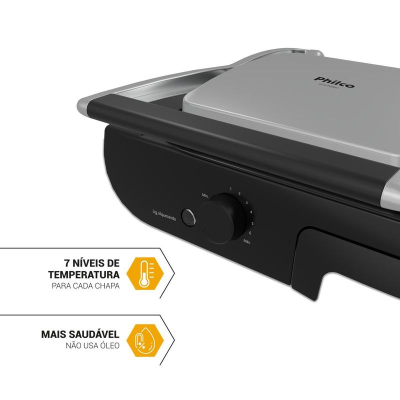 O Grill Philco PGR31 proporciona um preparo eficiente e versátil para suas refeições.
