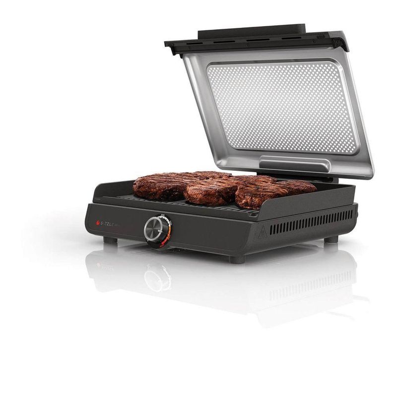 - Grill sem fumaça: A tampa de malha perfurada elimina a fumaça da sua cozinha e reduz os respingos, e a placa da grelha é equipada com altas bordas e um coletor de gordura para uma experiência de cozimento agradável.