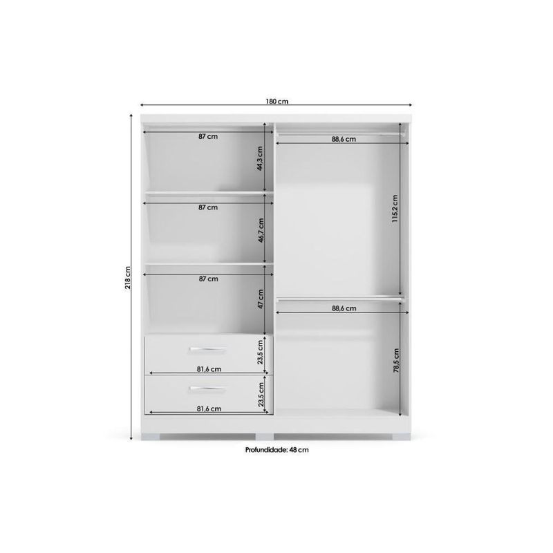 Dimensões(Cm): Comprimento(Profundidade): 50cm x Largura: 180cm x Altura: 218cm