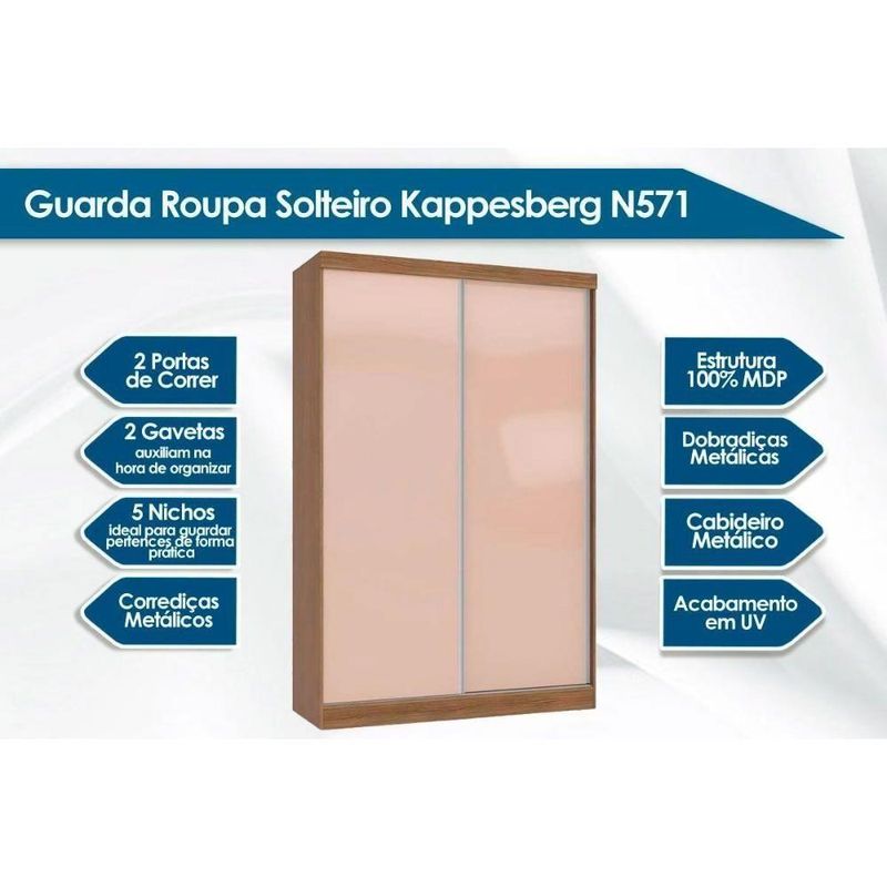 Guarda Roupa Solteiro 2 Portas de Correr e 2 Gavetas N571 Flex Branco/Branco ou Macadamia - Kappesberg