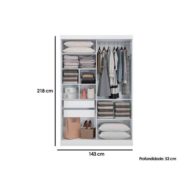 Dimensões(Cm): Comprimento(Profundidade): 53cm x Largura: 143cm x Altura: 218cm