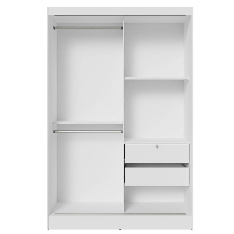 O Guarda-Roupa Luke da Madesa é ideal para o seu quarto. Conta com duas portas de correr com trilhos metálicos e deslizamento suave. Uma das portas possui espelho que é super prático e funcional. Os puxadores em alumínio são os mais resistentes para o uso no dia a dia.Internamente o espaço é ótimo: são duas gavetas com corrediças metálicas, sendo que uma delas possui fechadura, para uma maior segurança. Além disso, são cinco nichos e dois cabideiros de metal, com espaço para roupas curtas e longas.O acabamento interno e externo é branco, feito em Pintura Poliéster exclusiva, com sete camadas que protegem e conservam o móvel por muito mais tempo. Além disso, este processo não agride o meio ambiente.Medidas totais: