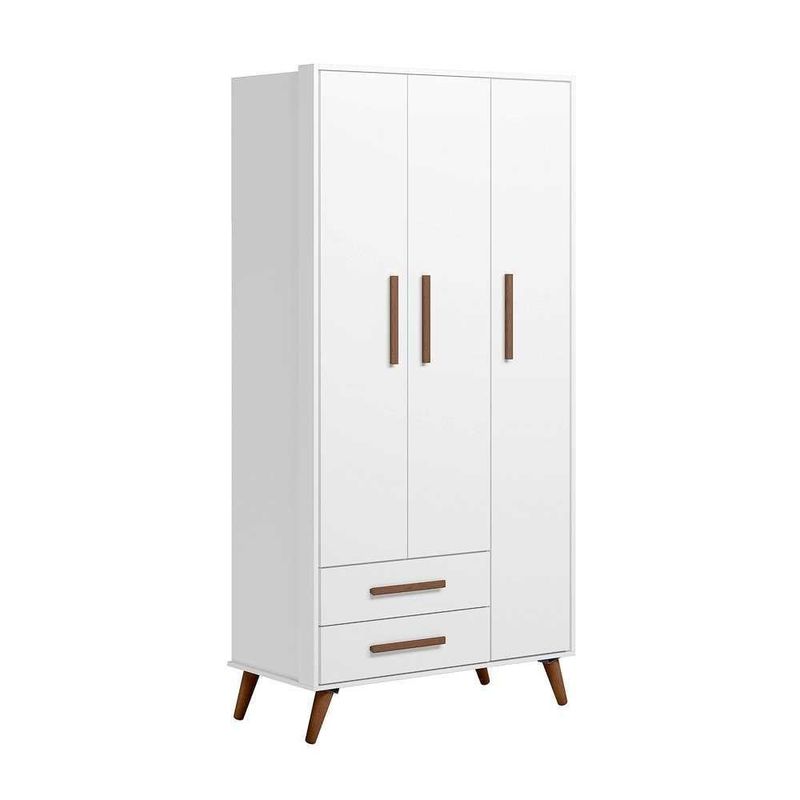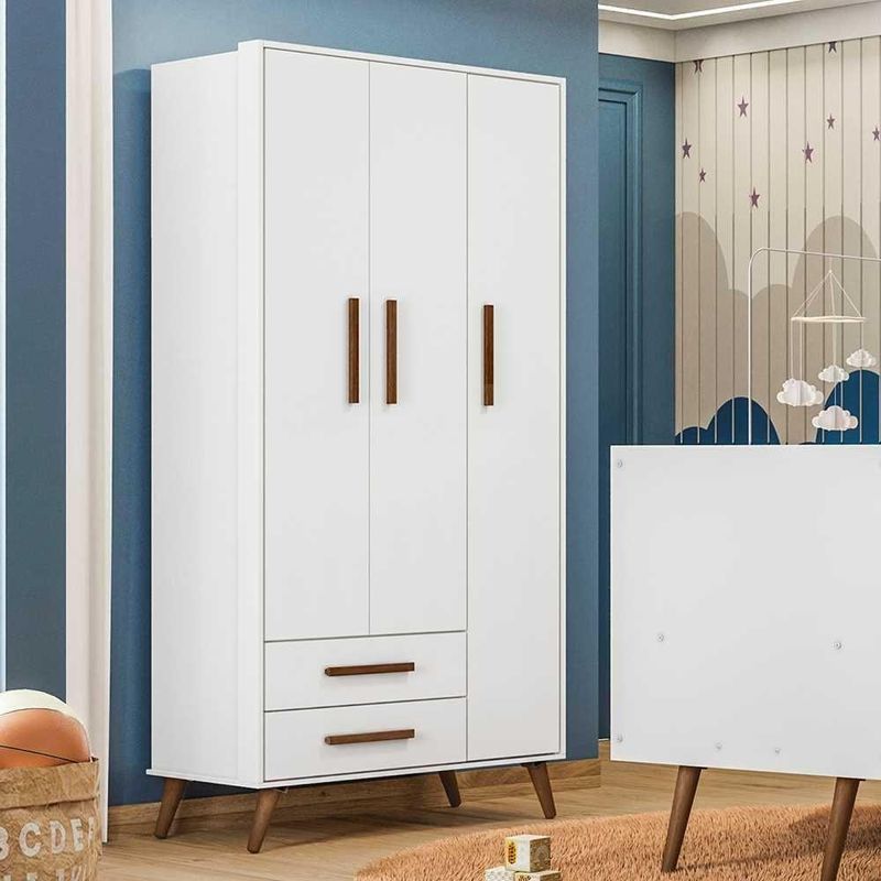 Guarda Roupa 3 Portas 2 Gavetas Que Retro Branco Acetinado