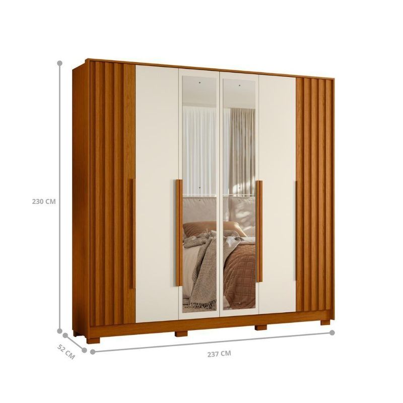 O Guarda Roupa tem um espaço interno amplo que traz umA versatilidade na sua organização, deixando seu ambiente mais estiloso.Dimensões do Produto:Altura: 230 cmLargura: 237 cmProfundidade: 52 cmInformações Complementares:Cor: Cinamomo/Off WhiteGavetas: Sim (4)Espelhos: Sim (4)Prateleiras: Sim (10)Nichos: Sim (12)Portas: Sim (6)Itens Inclusos:- 01 Guarda Roupa;- Kit completo para montagem, Manual detalhado de instruções para montagem.Garantia:3 meses contra defeito de fabricação.Informações Adicionais:- Fotos meramente ilustrativas do produto no ambiente.- Os objetos que ambientam as fotos não acompanham o produto;- Verificar descrição e tamanho do produto antes da compra.- Avaliar a mercadoria no ato do recebimento e recusar em caso de divergência ou .- Limpar com flanela ou pano macio seco, não utilizar produtos abrasivos, desengordurantes, álcool ou solvente. Não expor o produto diretamente à luz solar e à umidade.* Sugerimos a contratação de um montador para a montagem do produto. Não nos responsabilizamos por causadas no ato da montagem.* Não nos responsabilizamos pela montagem e desmontagem do produto, assim como os custos gerados nestas situações.* Não nos responsabilizamos por subir escadas, corredores e elevadores ou transporte por guincho em apartamentos. ALTURA DO PRODUTO (CM): 230 | ALTURA DO PRODUTO COM EMBALAGEM (CM): 42,3 | COMNTO DO PRODUTO (CM): 52 | COMNTO PRODUTO COM EMBALAGEM (CM): 239,9 | CONTEÚDO DA EMBALAGEM: 1 Guarda Roupa | CORES DO PRODUTO (FILTRO DE CORES): Cinamomo/Off White | COR PREDOMINANTE: Cinamomo | DESCRIÇÃO DO TAMANHO: 230x237x52 | ESTADO DE ORIGEM: PR | ESTILO: Clássico | GARANTIA DO FABRICANTE: 3 | INSTRUÇÕES/CUIDADOS: Limpar com flanela ou pano macio seco, não utilizar produtos abrasivos, desengordurantes, álcool ou solvente. Não expor o produto diretamente à luz solar e à umidade | LARGURA DO PRODUTO (CM): 237 | LARGURA PRODUTO COM EMBALAGEM (CM): 51,2 | MARCA: CASA H | MATERIAL PARA FILTRO: mdp | MATERIAL PRINCIPAL: MDP | PESO DO PRODUTO (KG): 189,9 | PESO PRODUTO COM EMBALAGEM (KG): 194,67 | POSSUI ESPELHOS: Sim | PRODUTO: Guarda Roupa | PRODUTO PRECISA DE MONTAGEM?: Sim, a montagem é facil mas sugerimos a contratação de um montador para a montagem do produto. Não nos responsabilizamos por danos cas no ato da montagem. | QUANTIDADE DE GAVETAS: 4 | QUANTIDADE DE PORTAS: 6 | QUANTIDADES DE CAIXAS DE EMBALAGEM: 5 | TIPO DE GUARDA ROUPA: Casal