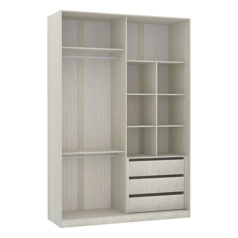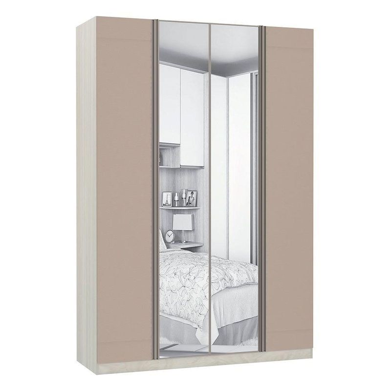 Guarda-roupa Solteiro Luciane 4 Portas 3 Gavetas Prime Plus Alumínio Com Espelho 160 Cm Legno Crema Com Connect