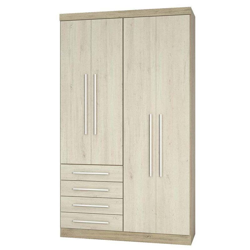 O Guarda Roupas Master possui excelente repartição interna. Contém 4 portas de bater, 4 gavetas internas, maleiro, cabideiro, calceiro e 4 nichos colmeia. Produto completo para auxiliar na organização das roupas. Com acabamento em pintura U.V. de alta definição e toque texturizado de madeira. Escala de brilho do móvel é semi-fosco.