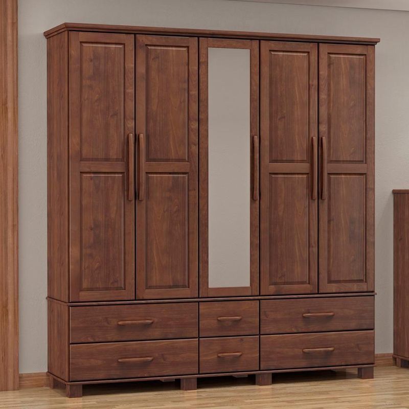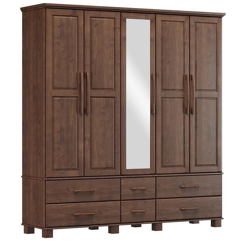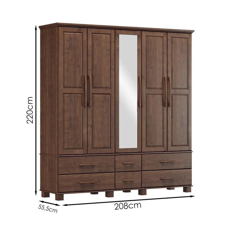 Guarda Roupa 5 Portas 6 Gavetas Espelho Madeira Maciça 208 Cm 2253 Cafe Milani Store