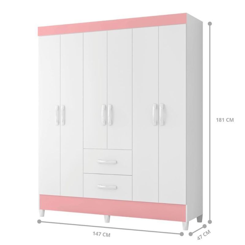 Guarda Roupa 6 Portas Cancun Branco Rosa