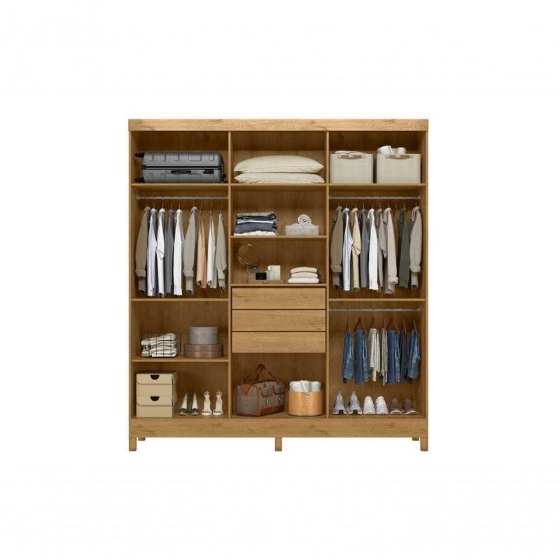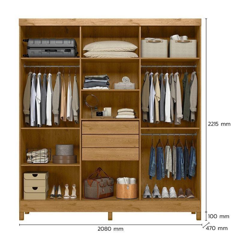 Cabideiros oblongos metálicos e ótima divisão interna para roupas longas; Gavetas com corrediças metálicas e excelente profundidade;Puxadores em MDF resistentes e com alto padrão de acabamento;Produto com portas contendo dobradiças metálicas; Ótimo espaço interno com prateleiras estrategicamente posicionadas para melhor organização;Espelhos externos opcionais, com escolha de posicionamento de acordo com o cliente (os espelhos são divididos em seis partes para garantir a proteção durante o transporte); Pés opcionais para evitar o contato do produto com o chão; Embalagem feita com papelão revestido por plástico, com isomanta e com BUP's (proteção de cantos) para garantir a qualidade do produto; Excelente acabamento revestido em pintura UV, que dá maior destaque à cor.