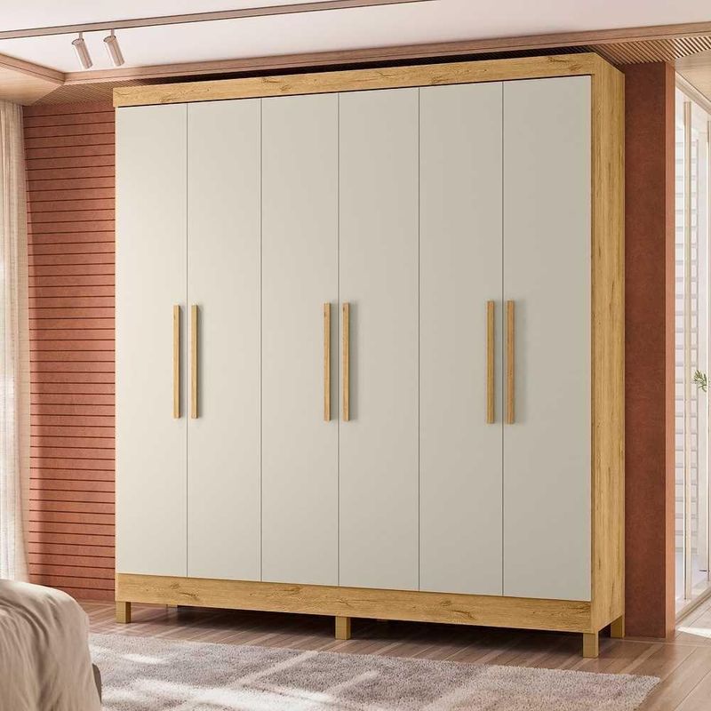 Guarda Roupa 6 Portas Gavetas Luna Freijo Toque Off White Brilho