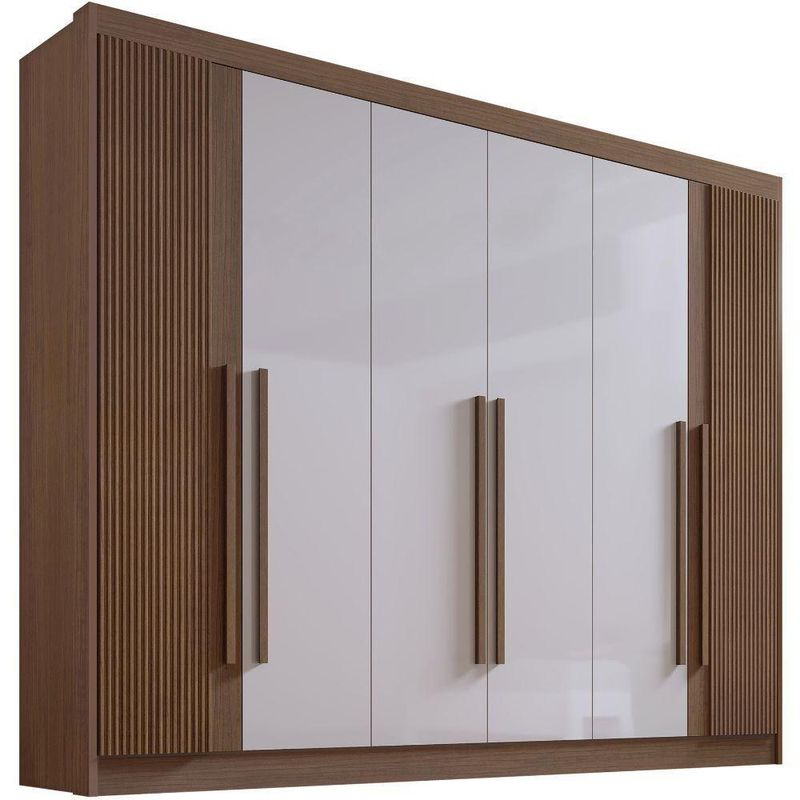 Guarda Roupa Athos Ripado Castanho Off White 6 Portas 7 Gavetas D?doro