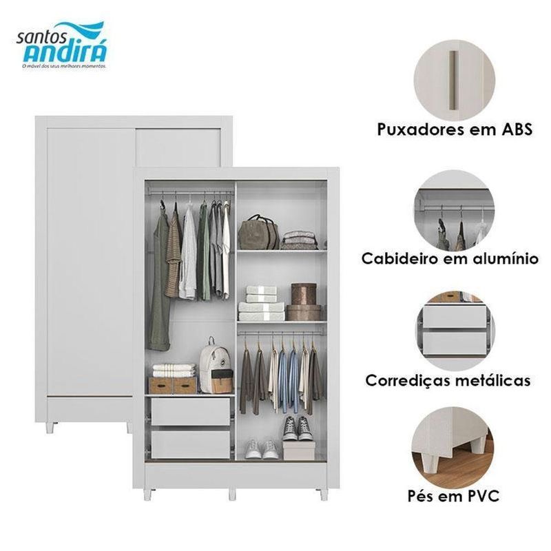 Guarda Roupa Belgica 2 Portas De Correr Branco Brilho - Santos Andirá