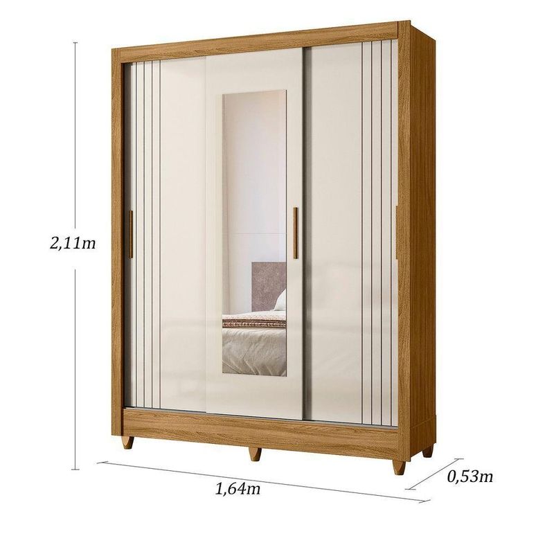 Guarda Roupa Bolivia 3 Portas De Correr Freijo Com Off White Fosco Com Espelho - Moval