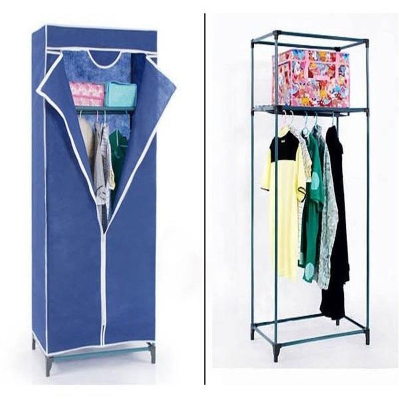 Guarda Roupa Cabideiro Portatil Arara Cabideiro Armario Multifuncional Dobravel Organizador Azul