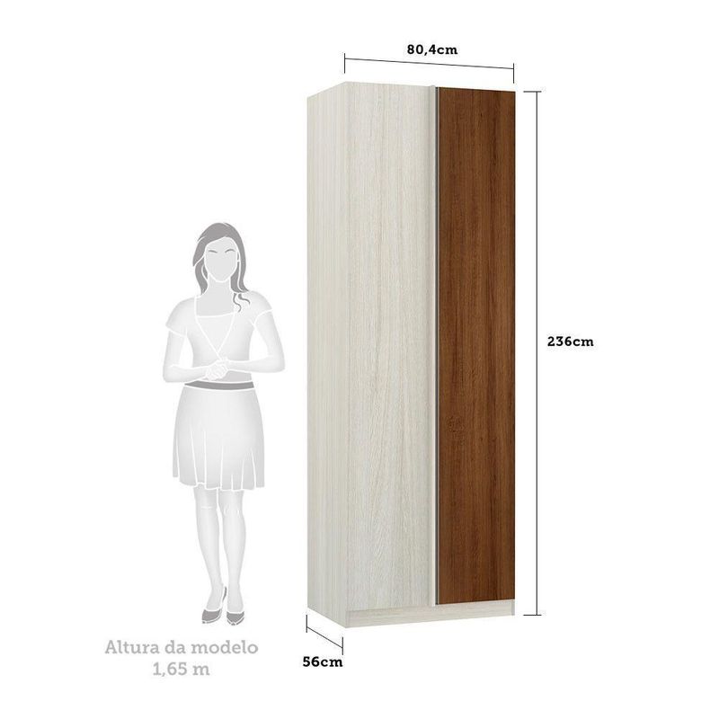 Guarda-Roupa Solteiro Luciane Canto Reto Direito e Esquerdo Prime Plus 1 Porta 80 cm
