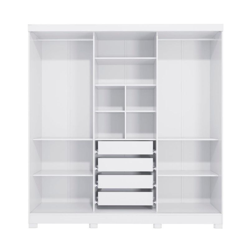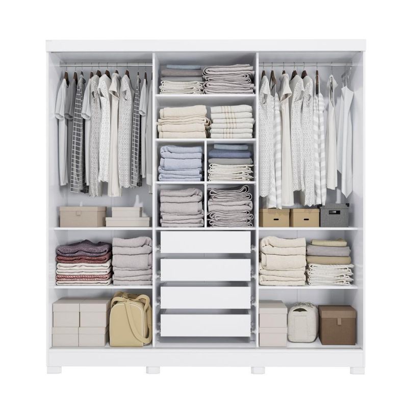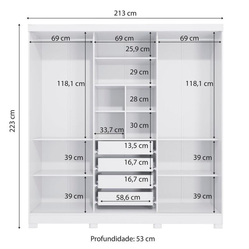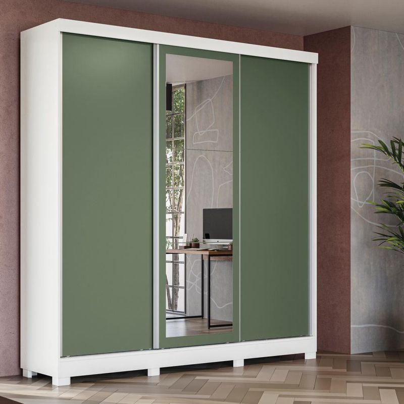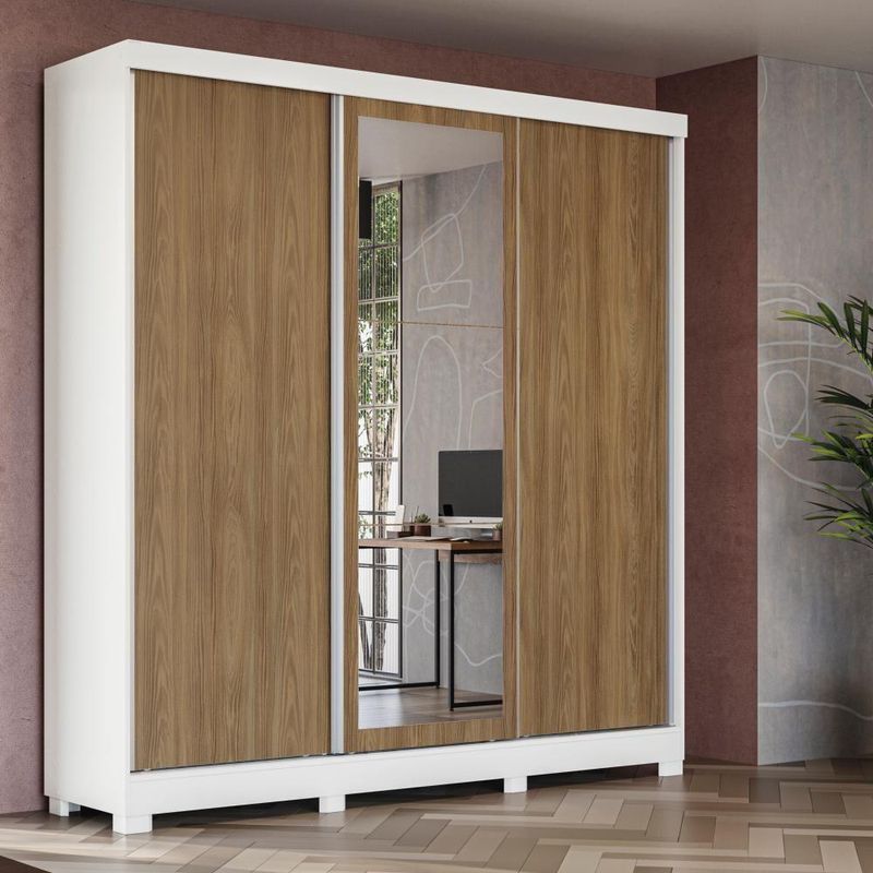 Deixe seu quarto mais lindo, moderno e organizado com o guarda-roupa CB03N577 da Kappesberg. Com uma ótima divisão de espaço e um design super atual, esse é o modelo perfeito para você.Produzido em MDP, material de alta qualidade, com chapa de 15mm, ele conta com três portas de correr e o tamanho ideal para todos os ambientes, com 2,23m de altura, 2,13m de largura e 53cm de profundidade. E são sete camadas de pintura, tanto na parte interna quanto na externa, o que garante mais durabilidade e beleza ao seu móvel.Perfeito para quem busca por muito espaço, na parte interna ele possui divisões iguais dos dois lados, o que garante facilidade na organização e divisão de espaço. E com nichos de tamanhos diferentes, ideais para guardar calçados e roupas dobradas nas prateleiras, ele conta com dois cabideiros metálicos, ideal para peças maiores, como vestidos ou casacos, garantindo mais praticidade. Muito versátil, esse modelo ainda possui quatro gavetas internas, facilitando a organização de peças menores.E para completar o charme do guarda-roupa, ele conta com corpo na cor branco, com acabamento em brilho, enquanto suas portas são reversíveis, possibilitando escolher entre as cores verde oliva, com pintura fosca, ou nogueira, com acabamento touch, que traz a textura dos veios da madeira, garantindo muita beleza para seu espaço. E com espelho de corpo inteiro e pés em polipropileno, esse modelo será o destaque do seu espaço, proporcionando beleza e praticidade ao seu dia a dia.Informações importantes:Opte pela cor das portas antes de montar, depois de montado não é possível alterá-las;As imagens são meramente ilustrativas, não acompanha acessórios;Pode haver variação de cor de acordo com a calibragem da tela onde o produto está sendo visualizado;Todos nossos móveis são entregues desmontados;A montagem é sempre por conta do cliente (orientamos a contratação de um qualificado, o manual de montagem acompanha o produto);O vídeo do produto pode ser genérico, então atente-se às imagens do anúncio para optar pela cor/modelo. Acabamento: Pintura Brilho / Pintura Touch / Fosco | Acabamento da Fita Borda: Papel | Cor: Branco/Nogueira | Corrediças: Metálicas | Garantia: 3 meses para defeito de fabricação | Gavetas: Internas | Matéria-prima: MDP / Polipropileno | Peso suportado por cabideiro: 10 Kg | Peso suportado por cada prateleira: 7 kg | Puxadores: Alumínio | Quantidade de calceiros: 2 | Quantidade de gavetas: 2 | Quantidade de portas: 3 | Quantidade de prateleiras: 9 | Sistema de montagem: Parafuso Philips / Parafuso Philips e Minifix | Tipo de porta: Correr