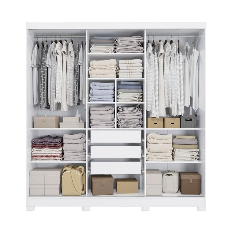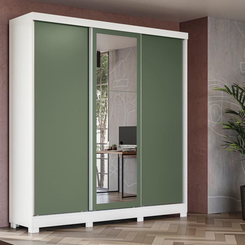 Deixe seu quarto mais lindo, moderno e organizado com o guarda-roupa CB02N577 da Kappesberg. Com uma ótima divisão de espaço e um design super atual, esse é o modelo perfeito para você.Produzido em MDP, material de alta qualidade, com chapa de 15mm, ele conta com três portas de correr e o tamanho ideal para todos os ambientes, com 2,23m de altura, 2,13m de largura e 53cm de profundidade. E são sete camadas de pintura, tanto na parte interna quanto na externa, o que garante mais durabilidade e beleza ao seu móvel.Perfeito para quem busca por muito espaço, na parte interna ele possui divisões iguais dos dois lados, o que garante facilidade na organização e divisão de espaço. E com nichos de tamanhos diferentes, ideais para guardar calçados e roupas dobradas nas prateleiras, ele conta com dois cabideiros metálicos, ideal para peças maiores, como vestidos ou casacos, garantindo mais praticidade. Muito versátil, esse modelo ainda possui três gavetas internas, facilitando a organização de peças menores.E para completar o charme do guarda-roupa, ele conta com corpo na cor branco, com acabamento em brilho, enquanto suas portas são reversíveis, possibilitando escolher entre as cores verde oliva, com pintura fosca, ou nogueira, com acabamento touch, que traz a textura dos veios da madeira, garantindo muita beleza para seu espaço. E com espelho de corpo inteiro e pés em polipropileno, esse modelo será o destaque do seu espaço, proporcionando beleza e praticidade ao seu dia a dia.Informações importantes:Opte pela cor das portas antes de montar, depois de montado não é possível alterá-las;As imagens são meramente ilustrativas, não acompanha acessórios;Pode haver variação de cor de acordo com a calibragem da tela onde o produto está sendo visualizado;Todos nossos móveis são entregues desmontados;A montagem é sempre por conta do cliente (orientamos a contratação de um qualificado, o manual de montagem acompanha o produto);O vídeo do produto pode ser genérico, então atente-se às imagens do anúncio para optar pela cor/modelo. Acabamento: Pintura Brilho / Pintura Touch / Fosco | Acabamento da Fita Borda: Papel | Cor: Branco/Nogueira | Corrediças: Metálicas | Garantia: 3 meses para defeito de fabricação | Gavetas: Internas | Matéria-prima: MDP / Polipropileno | Peso suportado por cabideiro: 10 Kg | Peso suportado por cada prateleira: 7 kg | Puxadores: Alumínio | Quantidade de calceiros: 2 | Quantidade de gavetas: 2 | Quantidade de portas: 3 | Quantidade de prateleiras: 9 | Sistema de montagem: Parafuso Philips / Parafuso Philips e Minifix | Tipo de porta: Correr